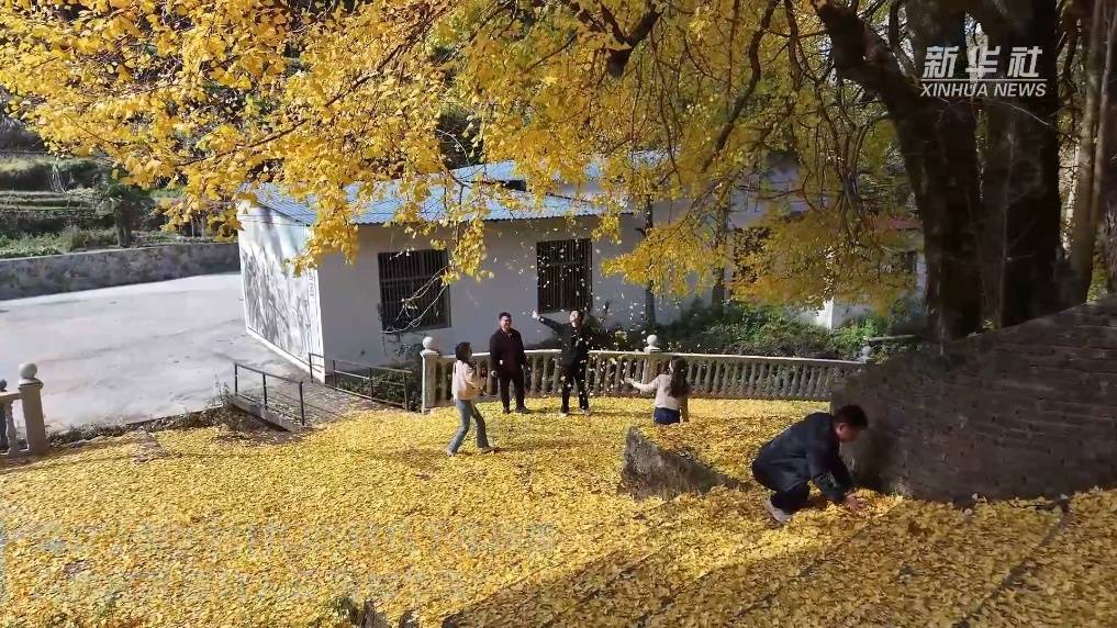 近日,在江西吉安市永丰县中村乡梨树村,一棵“八树同根”的千年银杏绽放“金冠”,成为一道自然奇观。