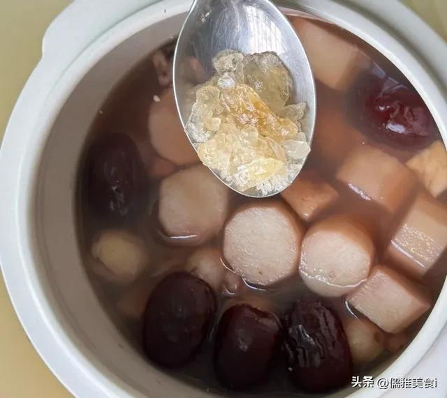 4. 加入红枣、桂圆肉,继续熬15分钟,让甜味和营养充分融入羹中。